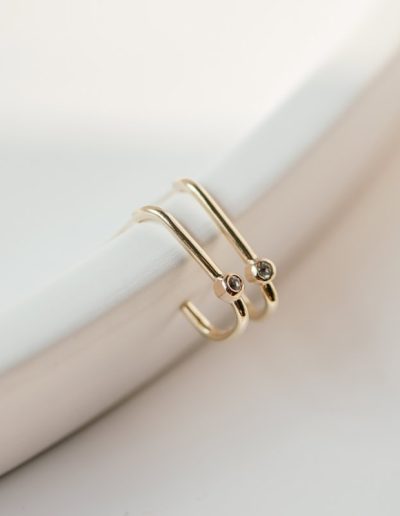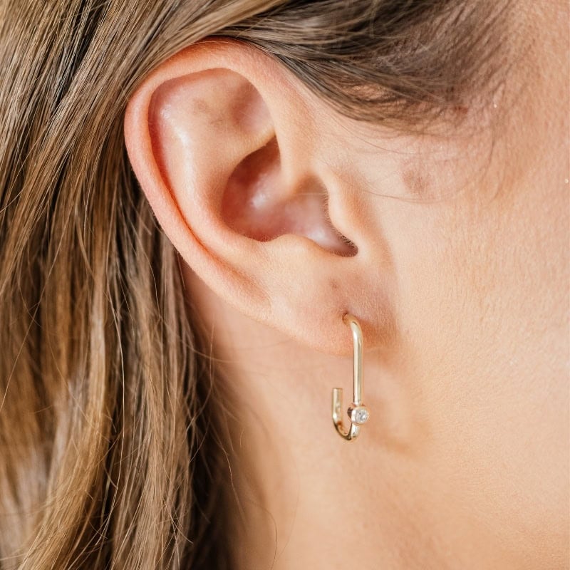 The Anchor Hoop Earrings are crafted from 9k gold or sterling silver, designed in a striking rectangular shape. A small 2 mm diamond is set in the front bend of the rectangle. The bold, strong design represents an anchor—the definitive and unquestionable guarantee of eternal life anchored in Christ. The sparkling diamond or moissanite symbolises the light in which we are anchored. These earrings serve as a beautiful reminder of the complete certainty we have, firmly rooted in Him.