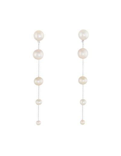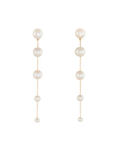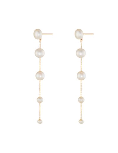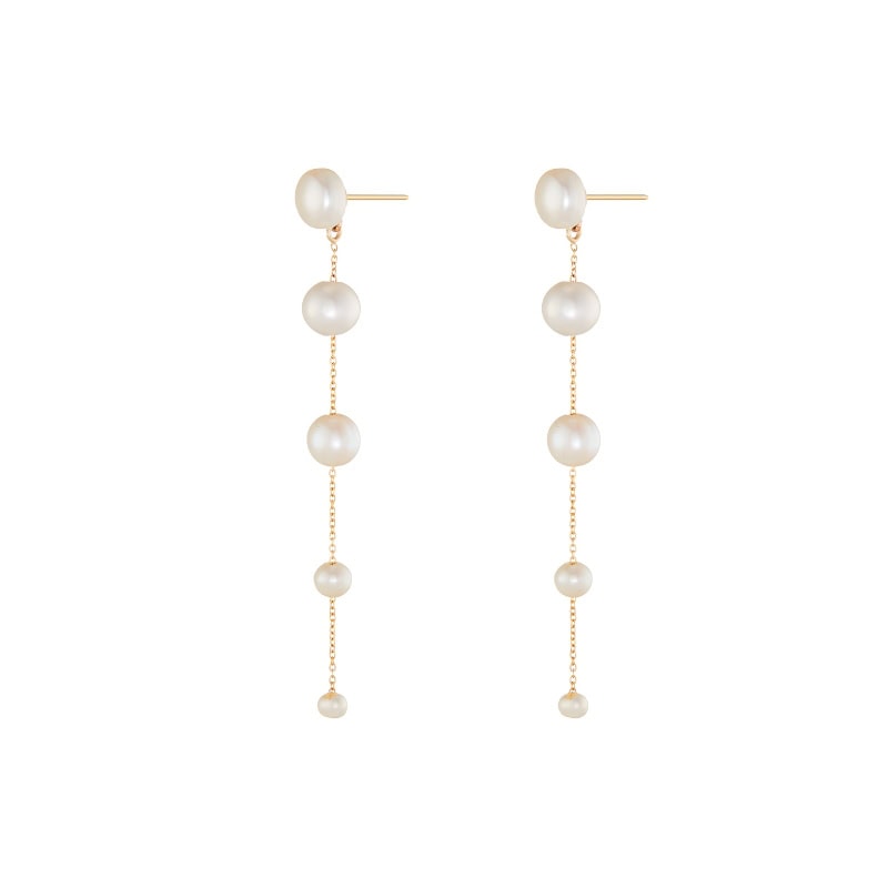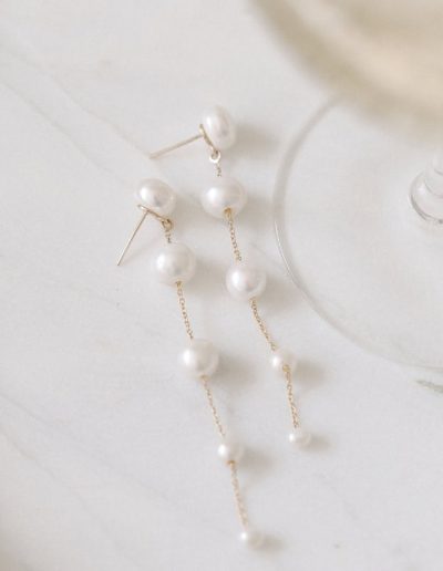 Designed for the captivating bride, the Fading Pearl Drop Earrings feature a string of pearls that transition from large to small, creating a beautiful fading effect. The design follows classic principles of balance and rhythm, with the graduated pearls forming a flow that draws the eye downward. Their elegant movement and timeless design will definitely leave a lasting impression as you walk down the aisle!