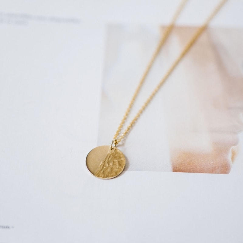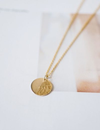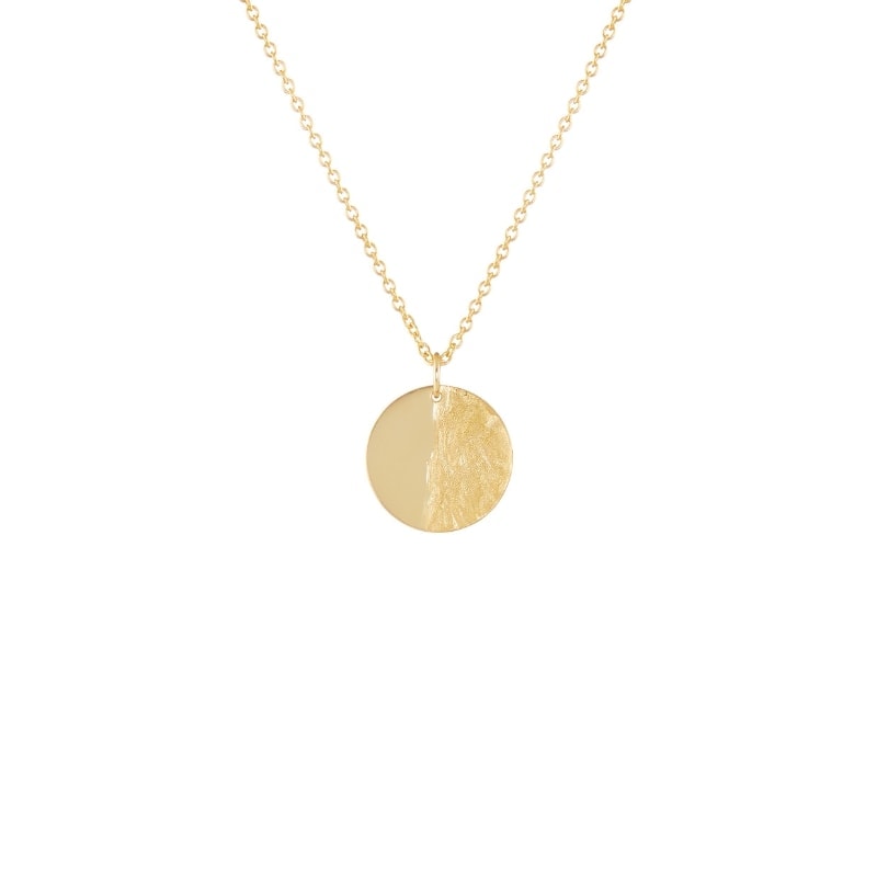 The round 9k gold plate, divided in the middle, with the smooth side on the left and the textured side on the right, represents our tumultuous life smoothed by faith in Christ. The gold in the pendant is genuine and pure (9k gold), reminding us of how clean we are washed by Christ. Now we can appear pure before Him.
